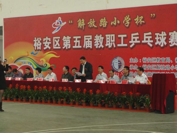 此次比赛由区教育局、区教育工会主办,解放路小学承办,主题为“奋发、进取、健康、和谐”。共有来自全区教育系统32支代表队、200余名运动员参加了乒乓球男、女团体赛,男、女单打四项比赛。比赛现场紧张有序,精彩纷呈,运动员们直拍、横拍,亮出自己优势;旋转球、弧线球,让人眼花缭乱。运动员们你推我挡,你扣我杀,表现出高超的竞技水平。“加油!”“好球!”呐喊声此起彼伏,场面十分热烈。