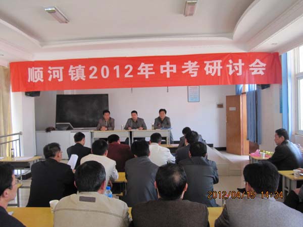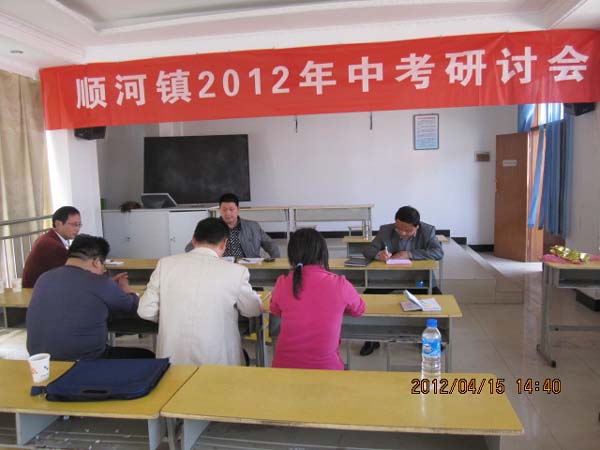 4月15日下午,顺河镇中心学校在顺河初中多媒体教室如期召开顺河镇2012 年初中毕业班工作研讨会。所属初中校长、教导主任及九年级全体授课教师参加了会议。