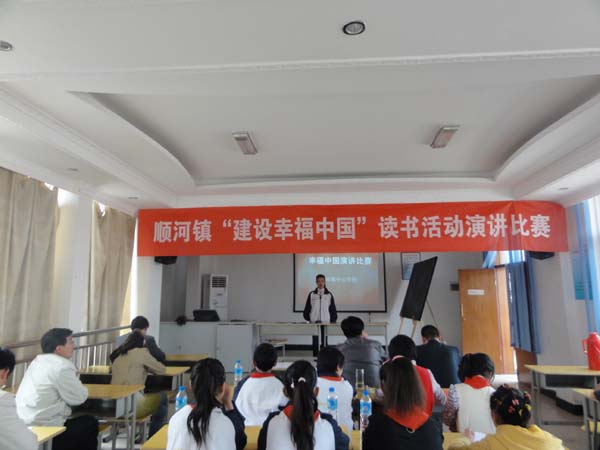 4月18日下午,顺河镇中心学校在顺河初中多媒体教室隆重举办2012年“建设幸福中国”爱国主义读书教育活动中学生演讲比赛暨小学生讲故事比赛。