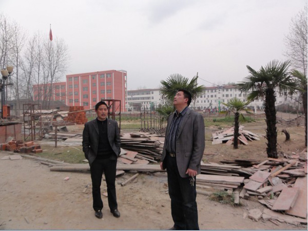 4月1日下午,中心学校安全工作促进会刚一结束,秦义全校长又风尘仆仆地来到顺河初中宿舍楼建筑工地督查工程进度与质量。