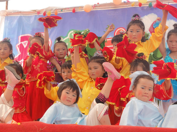 文艺演出在欢快的舞蹈《开门红》中拉开了序幕。在悠扬欢快的节拍中,小演员们身着节日的盛装,歌唱着童真的曲调、舞动着动感的旋律,《快乐的一天》、《我是特种兵》、《小朋友学礼仪》、《蓝精灵》等节目轮番上演,铃鼓舞《我们多么幸福》把文艺演出推向了高潮。现场的家长频频举起相机、手机,拍摄孩子们精彩的表演,歌声、鼓声、掌声和欢呼声相互交融,动人心弦。整场演出在一曲旋律优美的《江南》歌舞中圆满地落下帷幕。