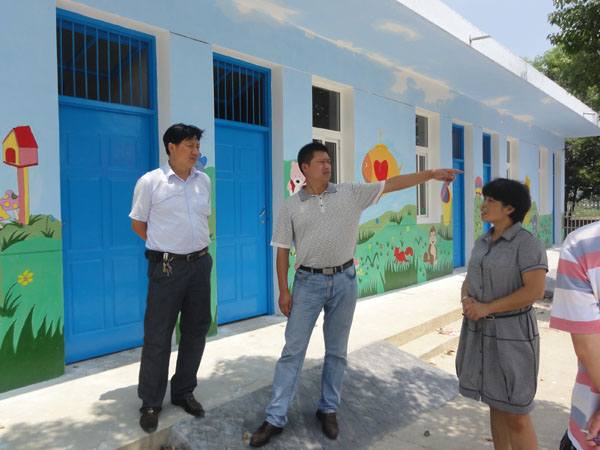8月17日,秦义全率领中心学校工作人员深入各项目学校督查中小学校园标准化建设工作。