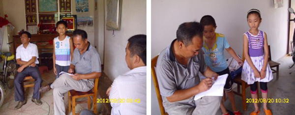 本次家访活动由学校统一组织,以班级为单位开展。家访中,教师向家长宣传教育政策法规、学校的办学理念及办学成绩,深入了解孩子的成长环境、生活经历,指导家长有效地进行家庭教育。家访教师重点关注父母离异、生活有特殊困难、病残、行为有偏差、外来务工人员子女等学生家庭,关注这些学生的生存状态,寻找他们的闪光点,给学生以自信和希望。全校26名教师全部都深入到了学生的家庭中,每位教师还认真填写了家访记录,并将家访过程中的感人经历记录下来。