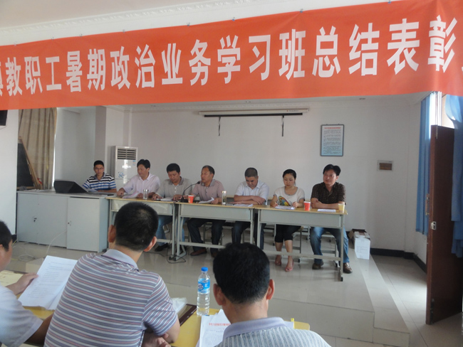 8月28日下午三点,六安市裕安区顺河镇中心学校在多媒体教室召开了2012年顺河镇暑期教职工政治业务学习总结表彰大会,顺河镇人大主席刘文成、镇党委副书记、纪委书记王庆军、镇党委委员丁胜荣、中心学校校长秦义全等同志出席会议。
