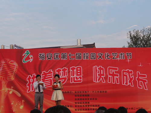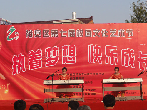 10月23日下午,以“执着梦想,快乐成长”为主题的裕安区第七届校园文化艺术节在苏埠镇苏南初中隆重举行,来自全区十九个代表队参赛。 我镇参赛节目是由火星学校董越和鲍璇两位同学表演的电子琴合奏:《山歌好比春江水》。两位小演员娴熟的的表演获得了评委们的好评,取得了令人满意的成绩。