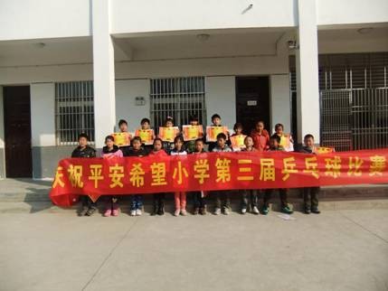 为丰富学生体育文化生活,提高学生乒乓球技和战术水平,平安希望小学于2013年11月14、15日举行了第三届乒乓球比赛,比赛吸引了近百名学生踊跃报名,共有七八十名小选手参加了比赛。全校三百多名师生共同参与、观看了此次大赛。