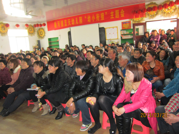 下午两点,蓝天幼儿园在和与会的二百多名幼儿家长或监护人签订了《顺河镇蓝天幼儿园幼儿接送安全责任书》,发放《顺河镇中心学校春季致幼儿家长一封信》后,园长唐云发表了热情洋溢的讲话。她首先感谢各位家长数年来对蓝天幼儿园的支持与关爱,蓝天幼儿园将不负众望,一如既往地强化校园安全工作,不断提高保教质量,把蓝天办成人民满意的幼儿园。随后,中国教育协会专家、国家级心理咨询师孙婧教授用具体生动的案例和亲身经历的故事,声情并茂地作了题为《家园合育,共促成长》的专题报告。会场气氛热烈,掌声经久不息。
