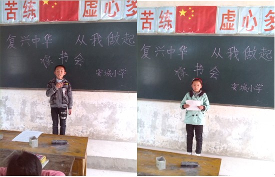 4月19日,为深入贯彻落实区教育局《关于开展2013年全国青少年五好小公民“复兴中华,从我做起”主题教育读书活动的通知》(教关[2013]4号)文件精神,安城小学组织全校学生认真阅读《复兴中华,从我做起》知识读本,积极开展读书征文评选暨小学生演讲比赛活动。