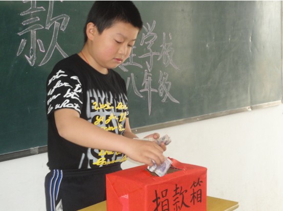 为响应校团支部的号召,积极地为白血病患者王婷同学募捐,我校八年级于2013年5月15日在本班教室开展"为王婷同学捐款活动".学生们积极踊跃地参加到捐款活动中去,大家把平时的零用钱及压岁钱捐出来,其中丁振宇同学捐了100元,这是他存的压岁钱,他毫不吝惜的捐了出来,这种献爱心的行为是值得表扬的.