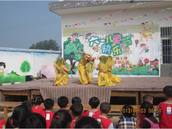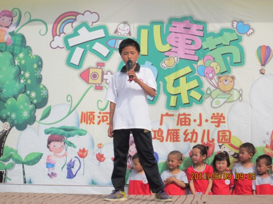 天空放晴,2013年6月3日上午学生们终于盼来了自己的节日演出,小学生们和幼儿园的小朋友携手共庆,有独唱、合唱、集体舞蹈等30多个节目,让孩子们在欢乐的海洋中度过了一个愉快的早晨。孩子们期盼着来年的“六一”儿童节早日到来。