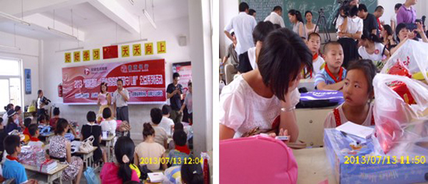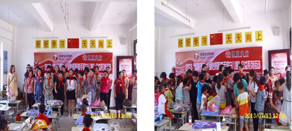 下午13:00,在德仁希望小学明亮的教室内,21位留守儿童见到了爱心妈妈们,经过了初步的认识之后,现场进行了一场爱心仪式,爱心妈妈为孩子们带来了书包和精美的文具,孩子们为爱心妈妈戴上了红领巾,安徽生活广播和徽商银行的领导也在现场将准备好的500元慰问金和安徽少儿出版社提供的图书送给了这些留守孩子们,并为爱心妈妈颁发了爱心荣誉证书。仪式结束,为了让爱心妈妈和留守的孩子们有更加深入的了解和认识,主办方精心安排了爱心妈妈走进这些孩子们的家里进行家访,为孩子提供需要的帮助。