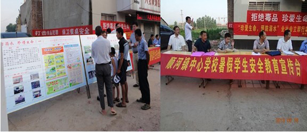 一、强化宣传教育,时刻铭记安全第一。各中小学、幼儿园结合近期所发生的安全事例,利用校园广播、宣传专栏、黑板报等阵地以及召开家长会、班会、团队活动等方式,开展系列安全宣传教育。校园内悬挂 “珍爱生命,预防溺水”宣传横幅,同时在镇内主要道口也悬挂有十余条宣传安全教育的条幅,积极营造全社会共同关注安全教育的氛围。6月18日,顺河镇中心学校联合派出所、工商所、卫生院等八部门在顺河街道搭建宣传平台,散发宣传(单)手册,深入开展“社会共治,同心携手食品安全”暨“预防溺水,珍惜生命”主题教育宣传活动,着力构建学校、家庭、社会三位一体的安全管控网络。6月20日~21日,顺河镇关工委及司法所、中心学校相关负责人组成的青少年普法教育宣讲团深入该镇火星学校、顺河初中开展送法活动。宣讲团以讲座的形式,结合发生在身边的实际事例,以案说法,以例释法,教育师生增强法律意识,自觉养成遵纪守法的良好习惯。