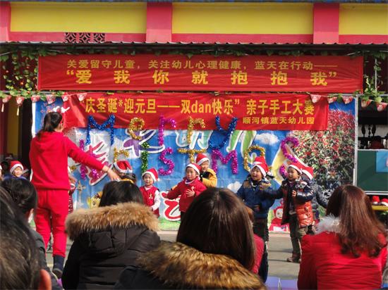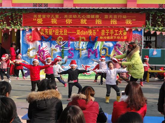 12月24日,顺河镇蓝天幼儿园成功举办“爱我你就抱抱我”暨“庆圣诞*迎元旦——双dan快乐”关爱留守儿童,关注幼儿心理健康联欢会。二百多位幼儿家长到园参加了活动并观看了幼儿表演。
