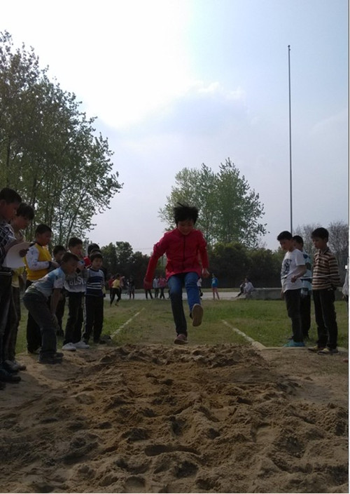 为了增强学生的体质,提高学生对体育的重视程度,感受到体育的魅力。我校于4月11日下午举行了一场跳远比赛活动。参与本次活动的学生来自四、五、六年级,根据学生的身高及年龄,共分成8组,其中男子组有5组、女子组有3组。参赛队员们激情高涨,啦啦队员们在一旁也为各自的队员们呐喊助威。