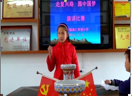 根据裕安区委宣传部、教育局等六部门《关于认真组织开“走复兴路 圆中国梦”青少年爱国主义读书教育活动的通知》精神,结合我校读书节活动,4月4日,顺河镇德仁希望小学积极举办“走复兴路 圆中国梦”演讲比赛等系列活动。     演讲现场气氛热烈,参赛选手们紧扣主题,结合自己的学习和生活阐述了对“中国梦”内涵的理解。他们时而娓娓道来,时而激情澎湃,充分表达了爱国之心、强国之愿、报国之志。那精辟独到的见解和富有感召力的语言,感染了现场每一位观众,将比赛一次次推向高潮。经过评委们认真、客观的打分,六年级赵维友、刘晨煜、任玉婷、鲍传琴的演讲获得一等奖。并代表我校参加全镇演讲比赛。通过此次比赛,不仅让学生拓展视野,锻炼思维,同时,也对“走复兴路圆中国梦”有了更深的理解,明白努力实现中华民族伟大复兴的中国梦,是他们义不容辞的责任,从而激发他们从我做起,从身边的小事做起,努力实现自己的中国梦。(通讯员:陈军)