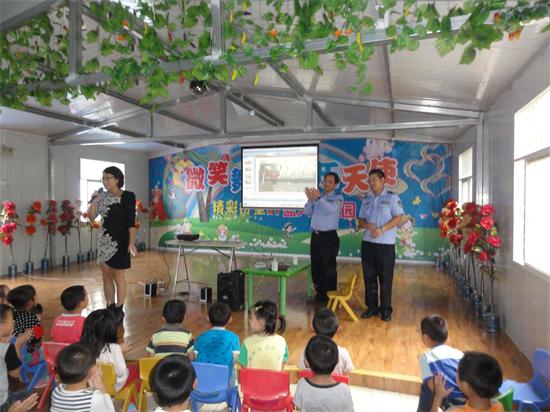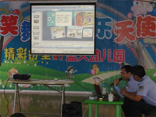 9月26日下午,顺河镇蓝天幼儿园邀请派出所指导员谭华义为二百多名幼儿作专题讲座。