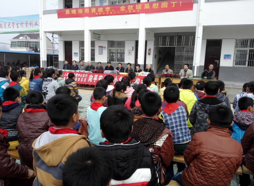 11月14日,省人民银行党委副书记、副行长陶诚同志率领合肥中心支行离退休老干部一行三十余人,来到顺河镇平安希望小学开展爱心捐赠活动。六安市人民银行行长张燕、顺河镇党委书记程正义、人大主席杨克俊等全程陪同。