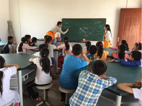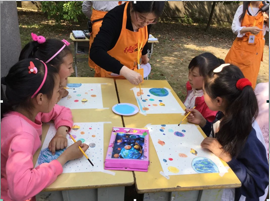 上午,4位德加艺术坊乡村支教团的老师们一早就已经开始了紧锣密鼓的准备工作,支教老师经过和学校科任教师的沟通交流后,决定将学生的课堂搬到学校的小树林中,在户外通过绘画的方式来解放孩子们的天性。支教团的老师们耐心地讲解了有关星球的图画,孩子们的绘画热情十分高涨。支教团的老师还通过听音乐猜乐器的方式来让孩子们感受音乐的魅力。在优雅的轻音乐声中支教团的老师们向学生们传授了一堂生动的线条型绘画课,不仅提高了孩子们动手绘画的能力,还培养他们学习绘画的兴趣。