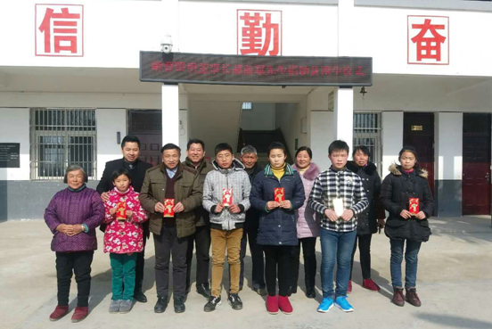 在龙头小学办公室里,郝前军先生亲切地和结对资助的学生及其家长交谈,仔细询问了学生学习、生活情况以及家庭脱贫进展。他勉励大家,困难只是暂时的,现在党和国家积极开展精准扶贫工作,相信大家经过努力奋斗,一定会早日摆脱贫困。他希望6位学生要树立远大理想,勤奋学习,力争早日成才,回报父母,回报社会。随后,郝前军先生把每个都装有1000元现金的红包分别发给6位学生,并和学生及其家长合影留念。此时此刻,学生和家长们都很感动,甚至流下了激动的泪水。他们表示,一定努力学习,以优异的成绩来报答郝会长的关爱之情。(梁连俊)