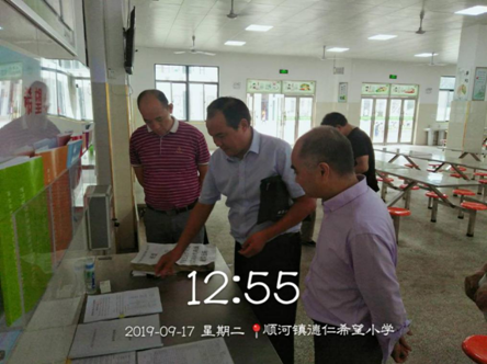 9月17日下午,裕安区教体局工会主席卢新海、营养办主任吴瑞等一行四人来到顺河镇,在镇中心学校张承军、王杰等同志陪同下,对德仁希望小学、平安希望小学及中心幼儿园等单位开学工作进行督导检查。